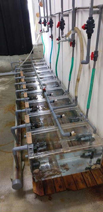 ![]() 室内育成試験 1m水槽実験 | ![]() 飼料給餌試験 11基の比較 |